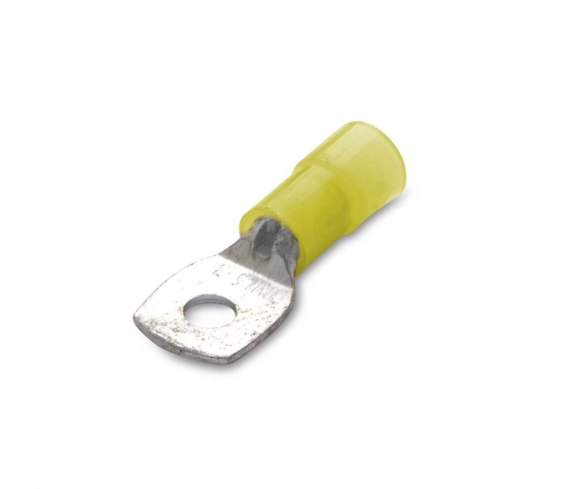 KOŃCÓWKA KABLOWA OCZKOWA RUROWA MIEDZIANA CYNOWANA IZOLOWANA, 6/6, 6 MM2, ŚR6, NYLON, ŻÓŁTA, Z OTWOREM INSPEKCYJNYM, OPAKOWANIE 100 SZTUK MODEL BM003311